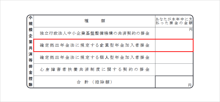 確定拠出年金には「企業型確定拠出年金」と「個人型確定拠出年金(iDeCo)」の2種類があり、それぞれ記入行が分かれています。